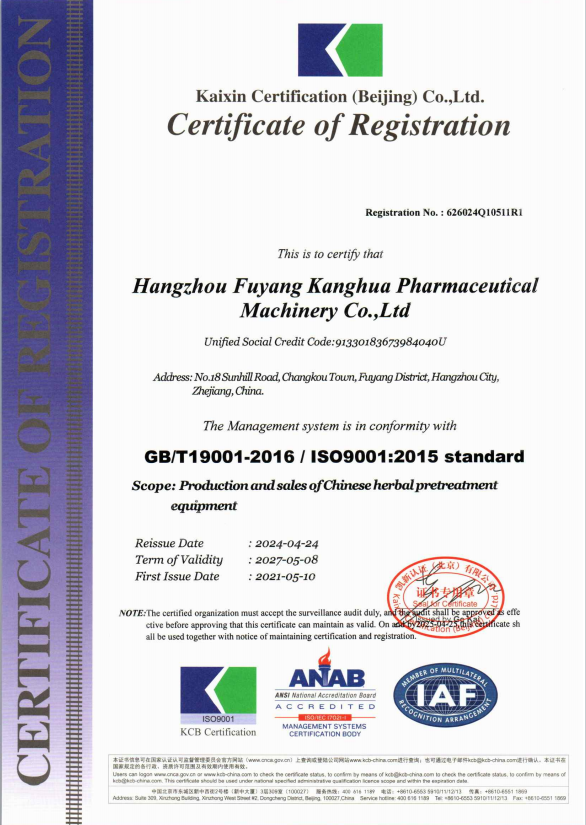 Hangzhou Fuyang Kanghua Pharmaceutical Machinery Co.,Ltd. (formerly: Hangzhou Fuyang Kanghua Machinery Factory) was established in 2001, is set production research and the integration of Chinese herbal medicines and Pieces pre-treatment processing equipment manufacturing enterprises. Companies adhering to the basis of product quality, customer service-oriented, research...