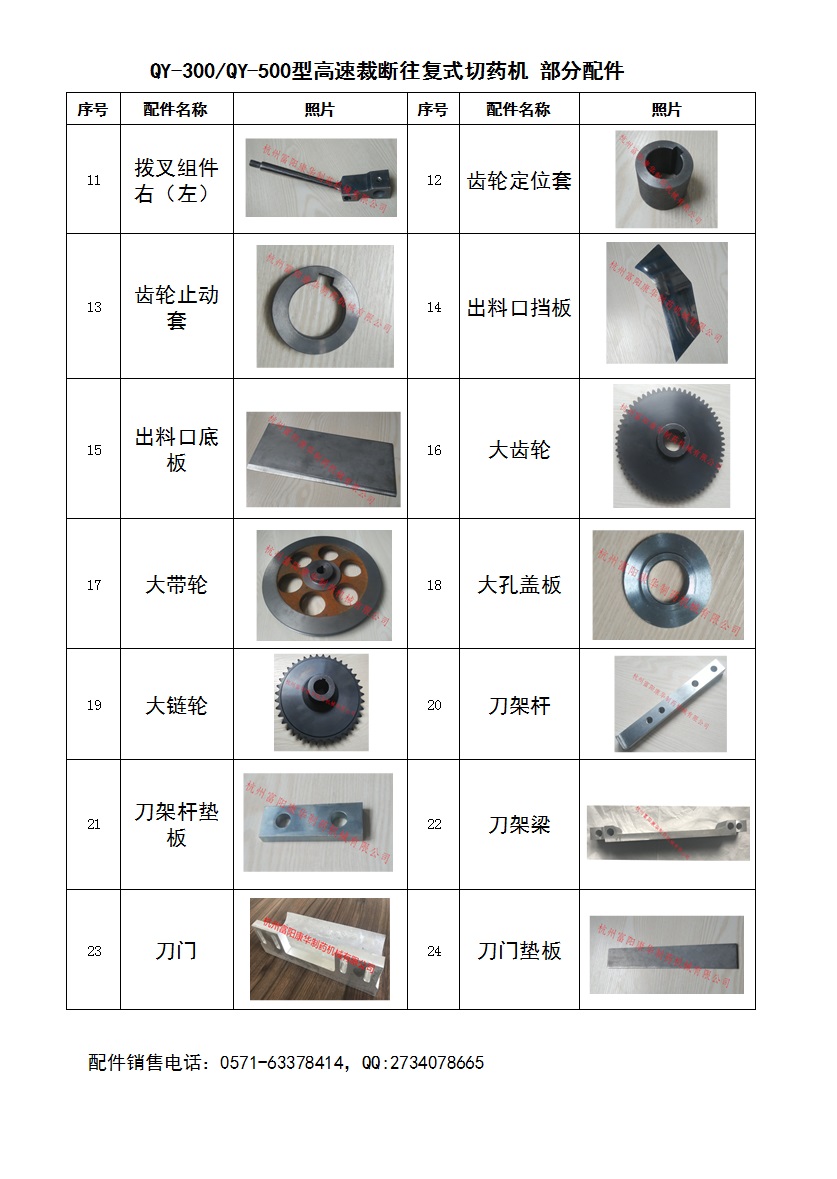 QY-300/QY-500高速裁斷往復(fù)式切藥機(jī) 配件